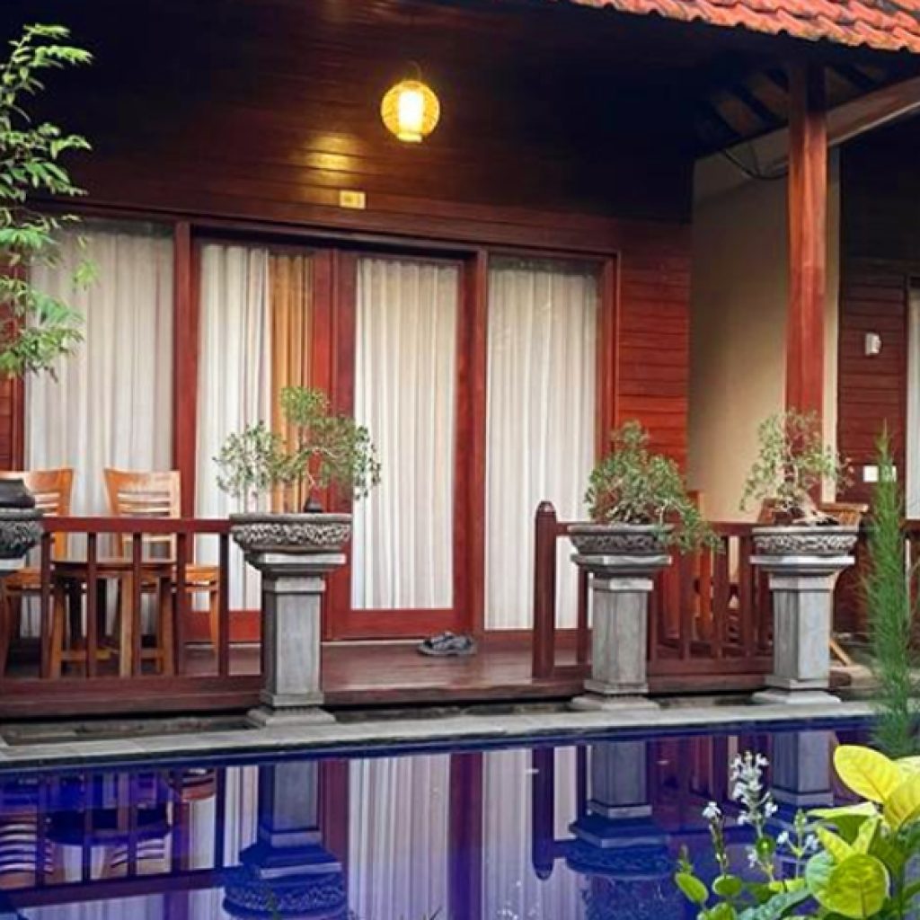These rooms located infront of the swimming pool. The Deluxe pool view Rooms are completed with Balcony, Private Hot and cold shower bath room, Mini Bar, Coffee Maker, Air Condition, Television, Wifi connection, 2 bottles Daily mineral water, Tooth Brush, Bath Towel, Soap and Shampoo.